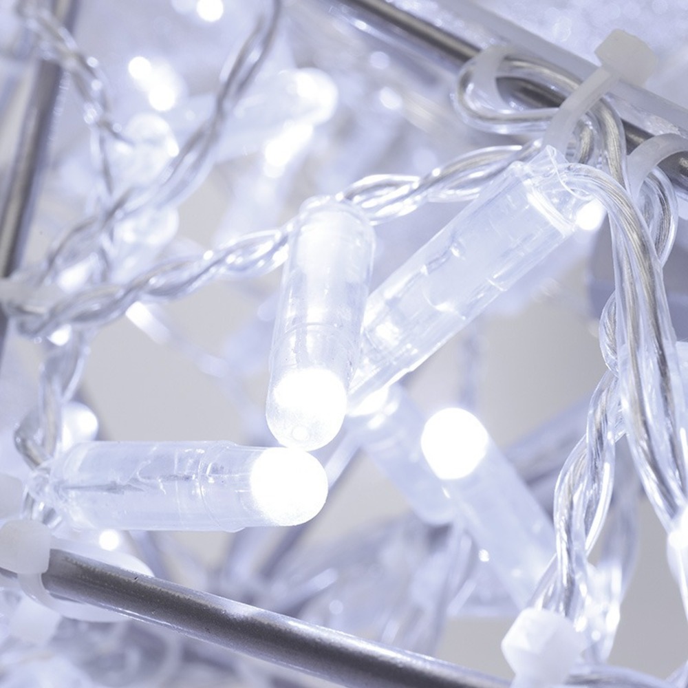 Звезда на елку стала неотъемлемым символом Рождества и Нового Года, ведь именно свет звезды ознаменовал рождение Христа и указал волхвам путь к младенцу. Уличная или домашняя елка всегда выглядит наряднее и эффектнее с верхушкой, украшенной яркой звездой. Благодаря съемной трубе и закрепленному на каркасе кольцу для подвешивания, можно с легкостью установить звезду не только на елке, но и на фасаде торгового центра или жилого здания. Прочный каркас из качественного метала и яркое свечение долговечных светодиодов будут радовать несколько сезонов подряд. Размер звезды: 50 см Цвет свечения диодов: белый, с серебристыми вставками Питание: от сети 230 В