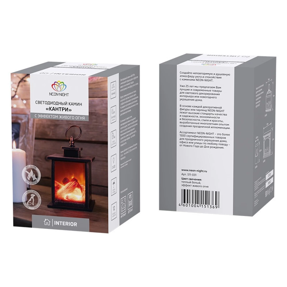Светодиодный камин «Кантри» с эффектом живого пламени поможет создать неповторимую атмосферу домашнего уюта и тепла. Главное преимущество декора – безопасность использования: изделие не выделяет дым, копоть, не нагревается и не может повредить окружающие предметы. Камин выполнен в виде бронзового фонаря с удобным кольцом, которое позволит подвесить фонарь на крючок в удобном месте. 2 светодиода, управляемые микрочипом, имитируют плавно движущийся огонь и тление поленьев. Интерьерное украшение работает от 3 батареек типа АА, которые размещаются в специальном отсеке в нижней части корпуса.