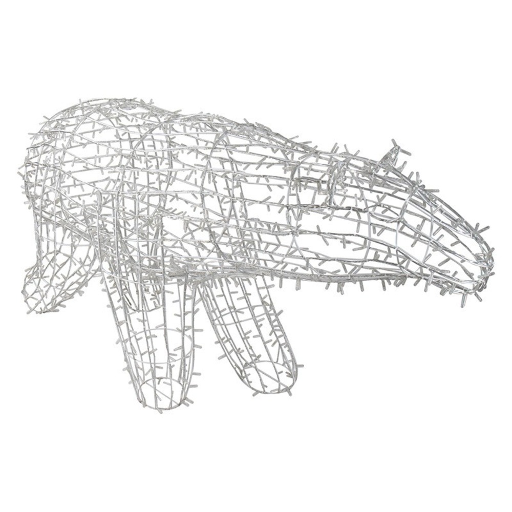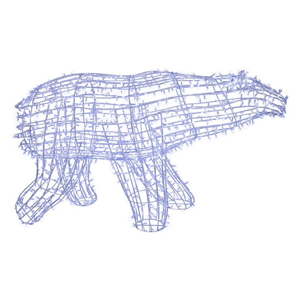 Световая фигура «Полярный медведь» – прекрасный декоративный элемент для любого интерьера: будь то дом, дача, офис или улица. Она прекрасно подходит для использования как внутри помещения, так и снаружи, благодаря высокой степени пылевлагозащищенности. Объемная световая фигура выполнена из металлического каркаса с использованием светодиодных гирлянд. В данной модели использовано 1500 светодиодов, размер 210х110 см, цвет диодов – белый. Питание от сети 230 В.