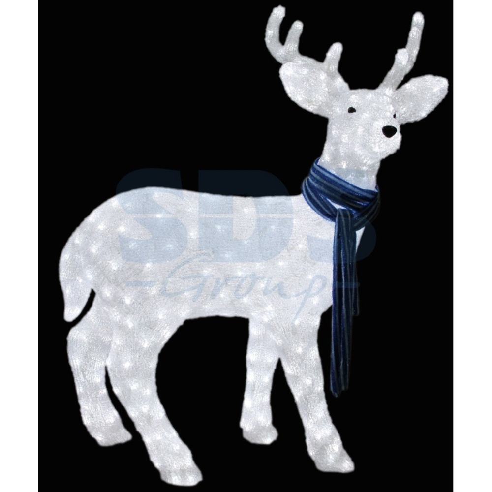 Акриловые фигуры за несколько лет вызвали большой интерес у дизайнеров и частных клиентов. С каждым годом расширяется не только ассортимент акриловых фигур, но и появляются новые технологии нанесения акрила. Эти яркие, светящиеся объемные фигуры, состоящие из металлического каркаса, акрила и светодиодов, применяются для оформления и создания новогодней атмосферы в кафе, ресторанах, торговых центрах, магазинах, на площадях и перед входом, а также просто в частных домах и квартирах. Все фигуры укомплектованы понижающим трансформатором , что обеспечивает безопасность при контактировании, а так же имеют степень защиты IP 44, что позволяет использовать их как в помещении, так и на улице. Акриловая светодиодная фигура Северный олень 100х65 см 420 светодиодов IP44 513-244 высотой 130 см, светящаяся более чем 400 ярких диодов, выполнена по специальной технологии нанесения акрила имитируя шерстяной покров реального животного. Она позволит Вам создать ту самую, настояющую новогоднюю атмосферу и принести сотни радостных улыбок.