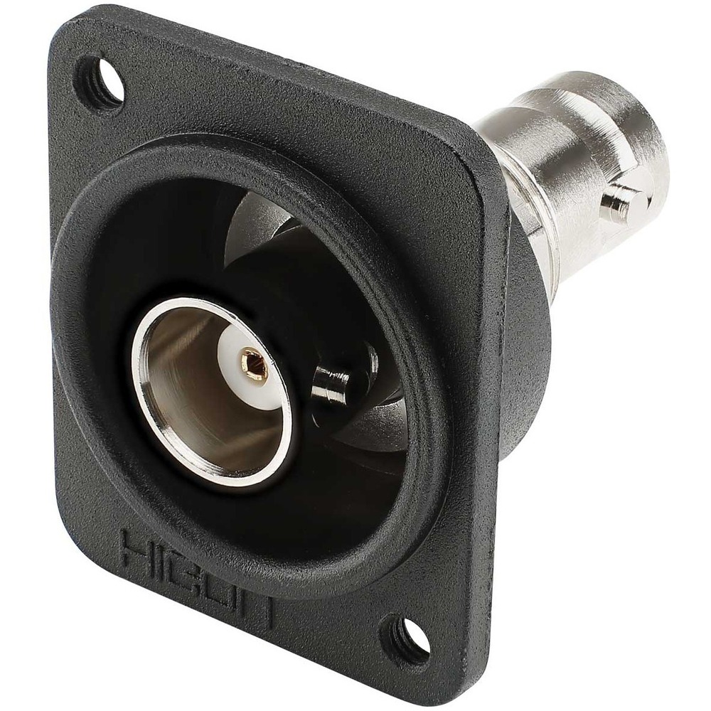 Разъем HICON BNC гнездо / BNC гнездо 50 Ом, адаптер на панель, количество контактов - 2/2, металлический корпус, фланец D-типа, крепежные отверстия с резьбой M3, байонетное соединение, изоляция массы