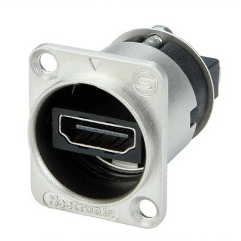 Seetronic SAHDMI -W Адаптер D- образный, проходной, HDMI <гнездо/мама> - HDMI <гнездо/мама>, для передачи любого цифрового ТВ и видео формата ПК, включая видео высокой четкости (HDTV); цвет корпуса: никель. Без резиновой крышки.
