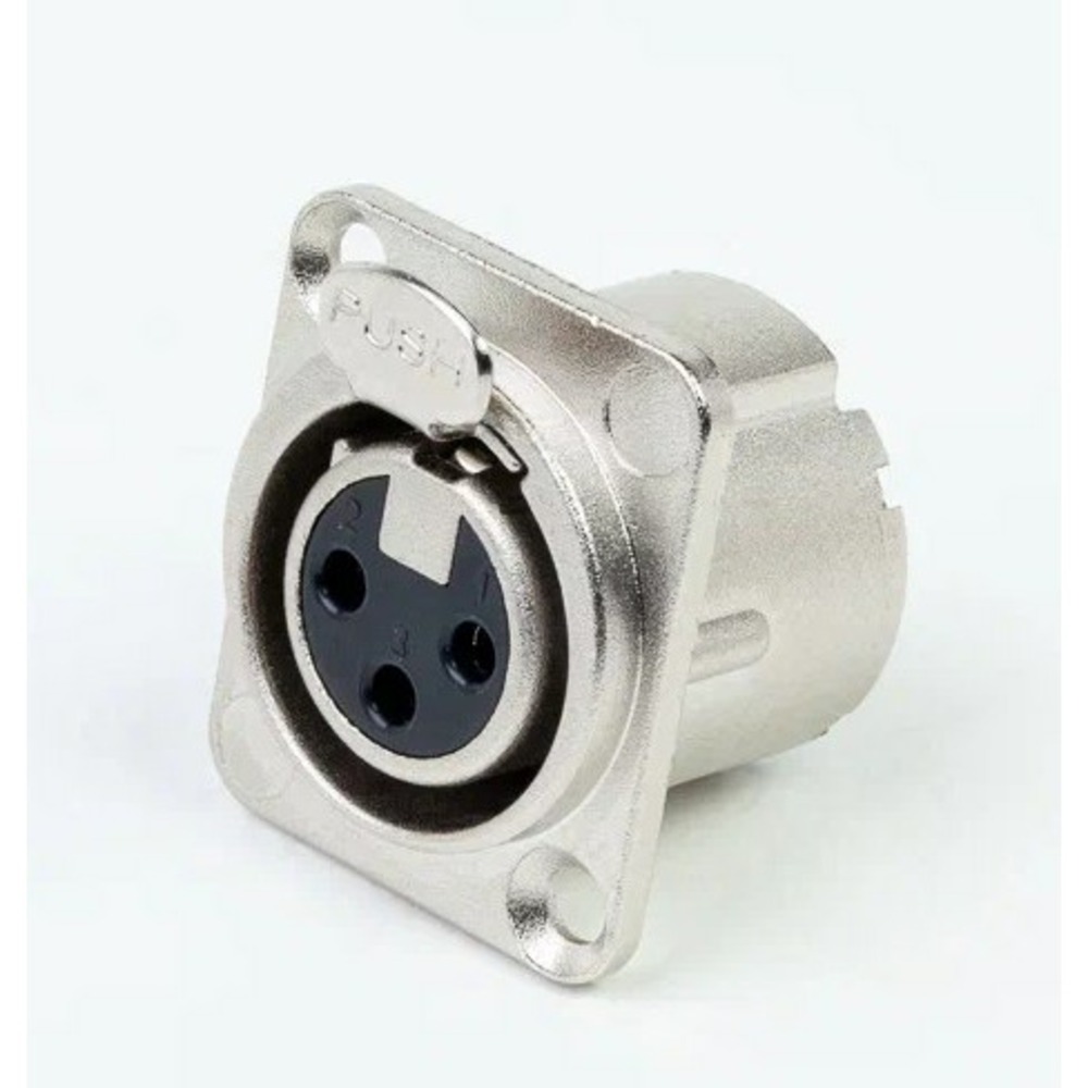 Тип Панельный разъем XLR, 3-х контактный <гнездо/мама>, DL-серия, фланец D-типа, металлический никелированный корпус, контакты - покрытие серебро, под пайку