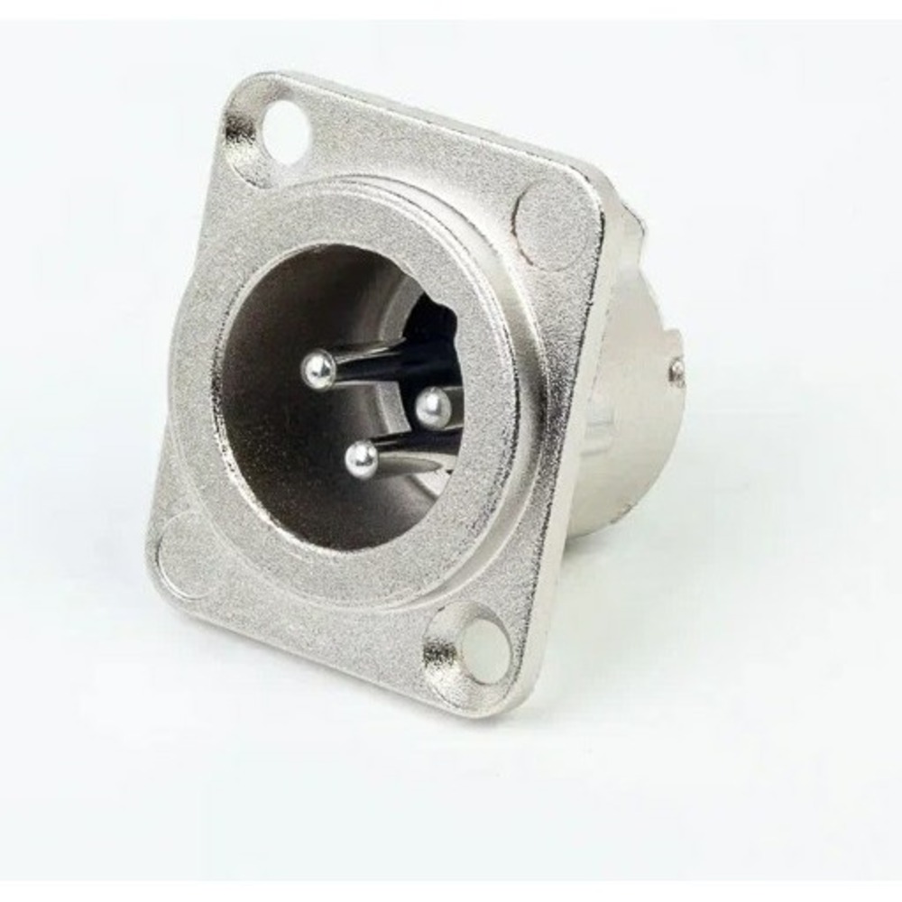 Тип Панельный разъем XLR, 3-х контактный <штекер/папа>, DL-серия, фланец D-типа, металлический никелированный корпус, контакты - покрытие серебро, под пайку