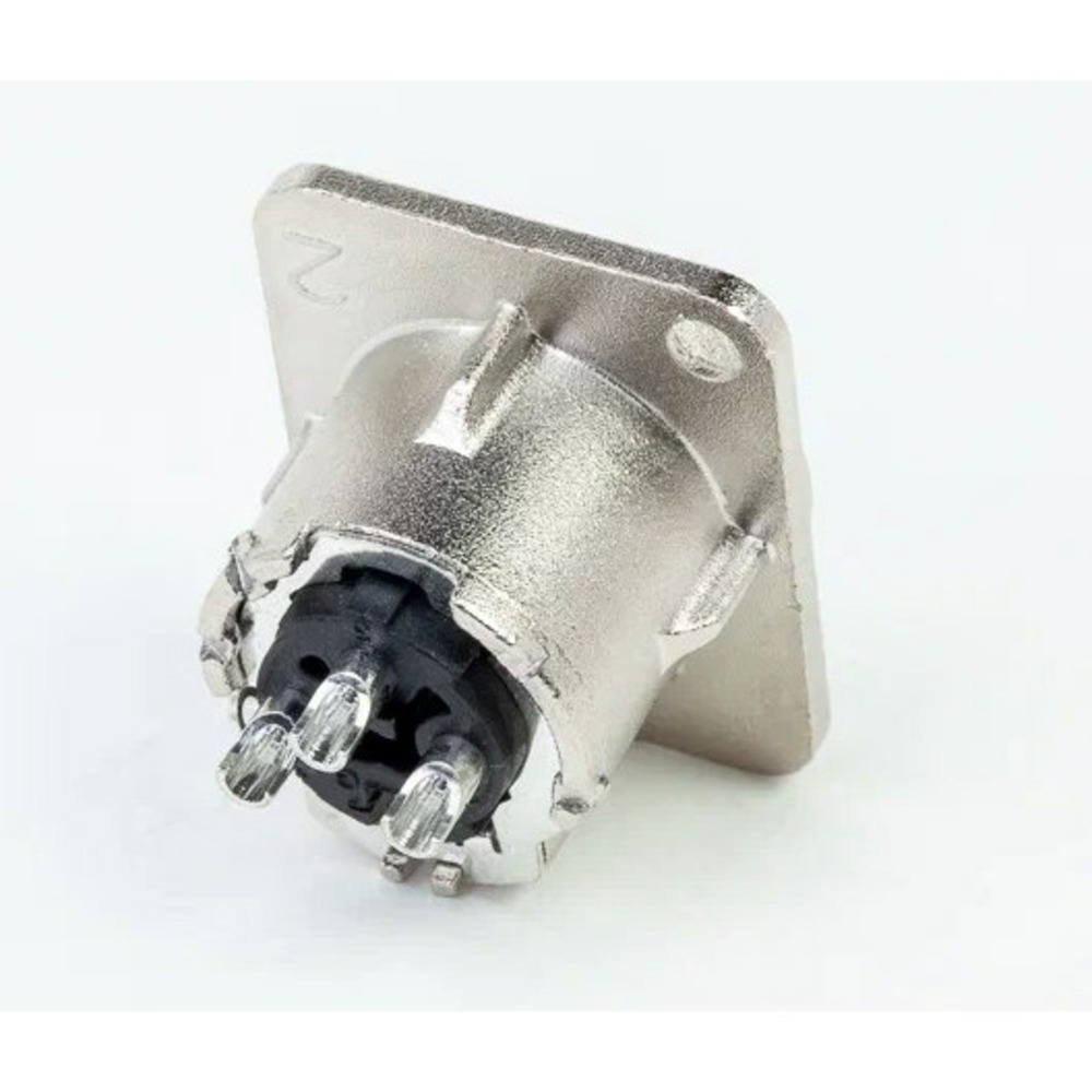 Панельный разъем XLR, 3-х контактный , DL-серия, фланец D-типа, металлический никелированный корпус, контакты - покрытие серебро, под пайку