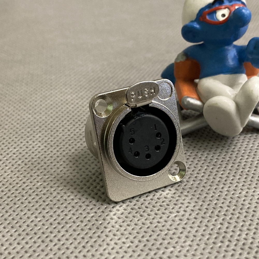 | Тип | Панельный разъем XLR, 5-и контактный <гнездо/мама>, DL-серия, фланец D-типа, металлический никелированный корпус, контакты - покрытие серебро, под пайку |