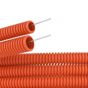 Труба гофрированная из ПНД Rexant 28-0032-5 с зондом 32 мм, оранжевая (25 метров)