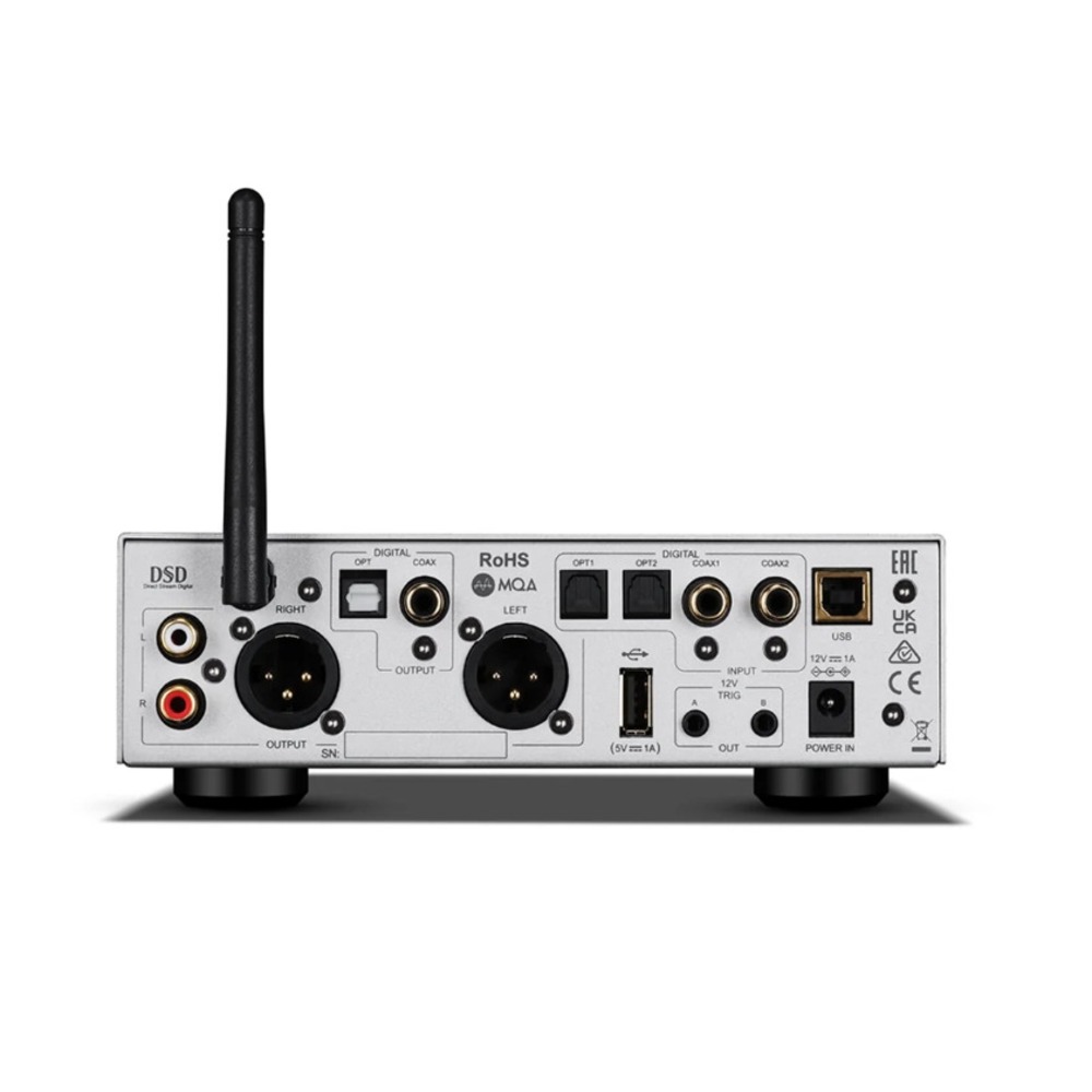 D7 оснащен четырьмя входами стандарта S/PDIF — двумя коаксиальными и двумя оптическими, входом USB для воспроизведения с внешних флэш—накопителей и входом USB type-B для ПК, Mac, смартфонов или планшетов. Он также оснащен коаксиальными, оптическими или аналоговыми выходами RCA и полностью сбалансированными XLR-выходами, что делает его универсальным цифровым аудиоцентром. Также предусмотрен прием по Bluetooth с поддержкой нескольких кодеков, включая aptX HD, и поддержкой стандарта Bluetooth 5.1 для обеспечения оптимальной дальности действия и скорости.