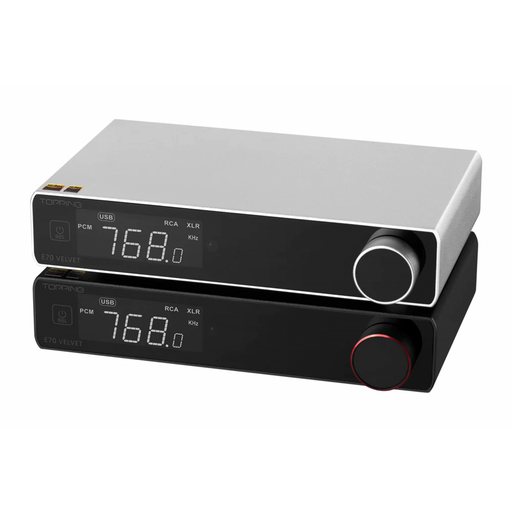 В Topping E70 Velvet встроен каскад цифро-аналогового преобразования на новом чипе ЦАП от AKMAK4499EX, новом флагмане производителя. Этот преобразователь имеет архитектуру с переключаемыми резисторами, использующую фирменную технологию VelvetSound. В нем используются новейшие технологии высококачественного преобразования для обеспечения максимально яркого и реалистичного воспроизведения звука.