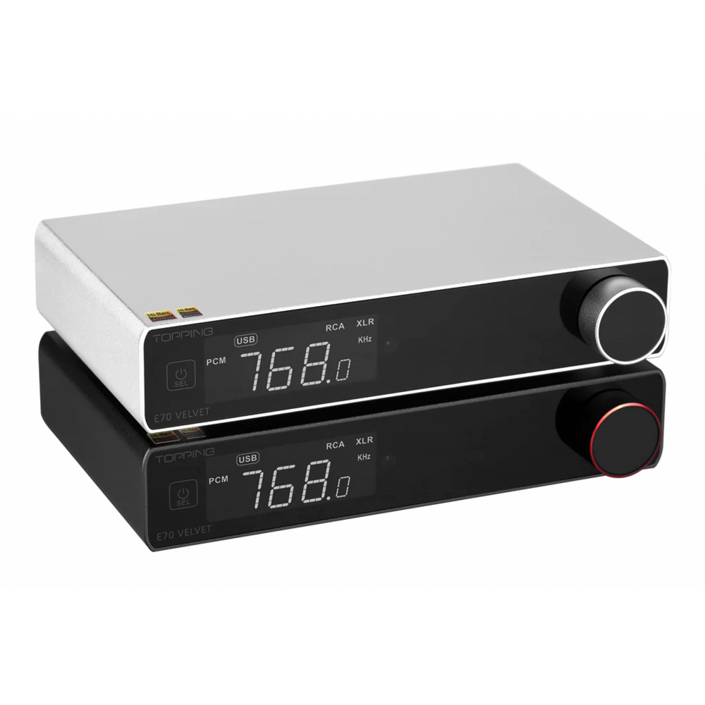 С E70 Velvet компания Topping предлагает новую версию превосходного ЦАПа E70, оснащенного новым высококлассным чипом цифро-аналогового преобразования AK4499EX от AKM. В остальном он использует превосходную техническую базу своего старшего брата, сочетая продуманный дизайн и высококлассные компоненты для исключительного звучания с продуманными и практичными функциями, такими как Bluetooth, триггер на 12 В или адаптируемый уровень выходного сигнала.