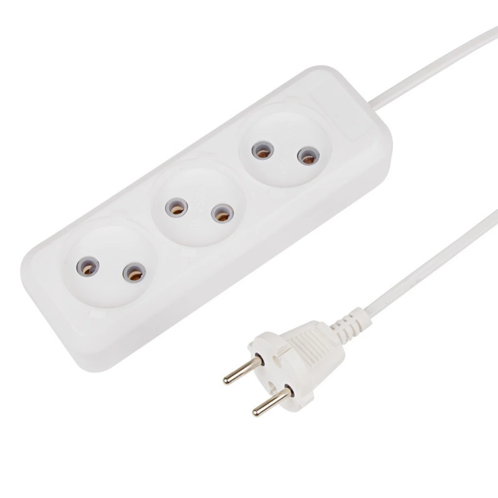 Удлинитель REXANT предназначен для подключения электрических приборов и электроинструментов в быту, когда недостаточно стандартной длины шнура для питания от стационарных розеток. Состоит из колодки с 3 гнездами и кабеля длиной 3 м. Универсальные розетки позволяют подключить вилки российского и европейского стандарта. Удлинитель без заземления предназначен для использования в сухих помещениях. Технические характеристики: Тип: удлинитель Количество розеток: 3 Тип розетки: Россия/ЕВРО Напряжение: 220-250 В Заземление: нет Длина провода: 3 м Тип провода: ШВВП Сечение провода: 2х0.75 Выключатель на корпусе: нет Световая индикация: нет Максимальная нагрузка: 1300 Вт (1.3 кВт)/6 А Степень защиты: IP20 Рабочая температура: 0...+50 ºС Цвет провода: белый