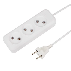 Удлинитель REXANT предназначен для подключения электрических приборов и электроинструментов в быту, когда недостаточно стандартной длины шнура для питания от стационарных розеток. Состоит из колодки с 3 гнездами и кабеля длиной 7 м. Универсальные розетки позволяют подключить вилки российского и европейского стандарта. Удлинитель без заземления предназначен для использования в сухих помещениях. Технические характеристики: Тип: удлинитель Количество розеток: 3 Тип розетки: Россия/ЕВРО Напряжение: 220-250 В Заземление: нет Длина провода: 7 м Тип провода: ШВВП Сечение провода: 2х0.75 Выключатель на корпусе: нет Световая индикация: нет Максимальная нагрузка: 1300 Вт (1.3 кВт)/6 А Степень защиты: IP20 Рабочая температура: 0...+50 ºС Цвет провода: белый