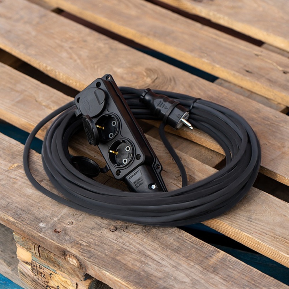 Морозостойкий силовой шнур-удлинитель REXANT с 3 гнездами предназначен для подключения электрических приборов и электроинструмента в экстремальных условиях отрицательных температур, когда недостаточно стандартной длины шнура для питания от стационарных розеток. Удлинитель с заземлением REXANT длиной 20 метров предназначен для использования в условиях экстремальных температур в помещениях и вне помещений. Электрическая вилка на проводе европейского стандарта. Основные характеристики: Тип: удлинитель Количество розеток: 3 Тип розетки: евро Напряжение: 220-250 В Заземление: да Длина провода: 20 м Тип провода: КГтпХЛ Сечение провода: 3х1,5 Максимальная нагрузка:(16 А/3,6 кВт) Степень защиты: IP44 Рабочая температура: –40...+50 ºС Цвет: черный