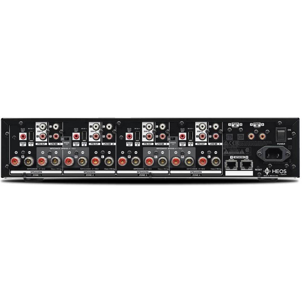 HEOS Drive HS2 способен управлять практически любой комбинацией конфигураций динамиков, так как оснащен встроенными фильтрами DSP высокого/низкого уровня, что позволяет устанавливать любой выход на полный диапазон, от режима сабвуфера до режима сателлитов, с настраиваемыми точками кроссовера. Терминалы для подключения динамиков снабжены 2-мя парами фиксирующих клемм, которые совместимы с коннекторами типа "банан". Кроме того, есть 4 выхода триггера 12 В для управления другими компонентами, а само шасси оснащено тихим вентилятором охлаждения для обеспечения долговременной стабильной и надежной работы.