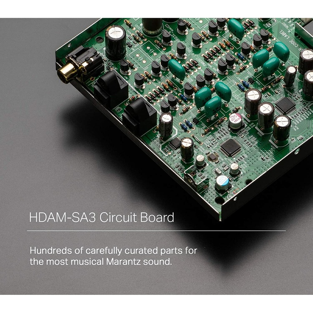 Marantz разработала собственные дискретные печатные платы для замены стандартных комплектующих. Модули HDAM (Hyper Dynamic Amplifier Module) состоят из дискретных компонентов для поверхностного монтажа с короткими путями прохождения сигнала L / R в зеркальном отображении. Эти устройства делают то же самое, что и операционные усилители, но значительно превосходят эти решения с точки зрения скорости нарастания напряжения и снижения уровня шума, что приводит к более динамичному, точному и детальному звуку. В усилителе Marantz PM6007 схема HDAM-SA3 улучшена по сравнению с предыдущим модулем, и на стабильность тока холостого хода меньше влияет температура силового транзистора, чтобы поддерживать звуковые характеристики даже при высоком уровне выходного сигнала.