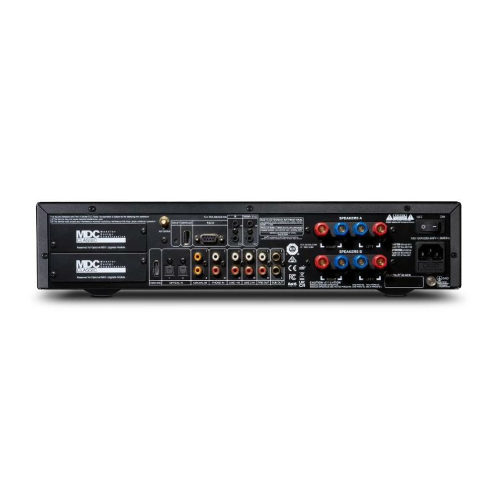 Аппарат оснащен экономичным импульсным источником питания, способным создать достаточный резерв по току. Заявленная мощность — 130 Вт на канал. Кроме бортового ЦАП, среди интерфейсов есть вход фонокорректора MM, а в паре с телевизором, будет особенно хорош благодаря HDMI eARC. Не забыт и Bluetooth с поддержкой Qualcomm aptX HD.