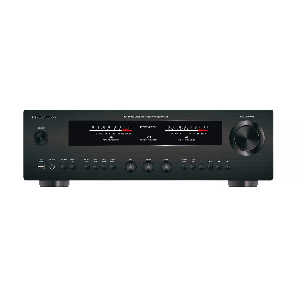 Premiera A3S - современный интегральный Hi-Fi стереоусилитель класса AB со встроенными сетевым проигрывателем, MM/MC фонокорректором, ЦАП, Bluetooth, HDMI ARC, Wi-Fi и AirPlay 2, с номинальной выходной мощностью 110 Вт на канал. При общей сдержанности дизайна, свойственной всем устройствам Premiera, A3S выделяется своими крупными и яркими стрелочными VU-индикаторами вместо дисплея на лицевой панели и ручками темброблока под ними. Эти два элемента придают модели нео-винтажный вид, столь модный сегодня. При этом управление усилителем без дисплея и меню не стало менее удобным – кнопки и потенциометры прекрасно справляются, даже сложные процедуры вроде обновления ПО или возврата к заводским установкам можно провести, используя комбинации кнопок на лицевой панели. К тому же всегда поможет пульт дистанционного управления.