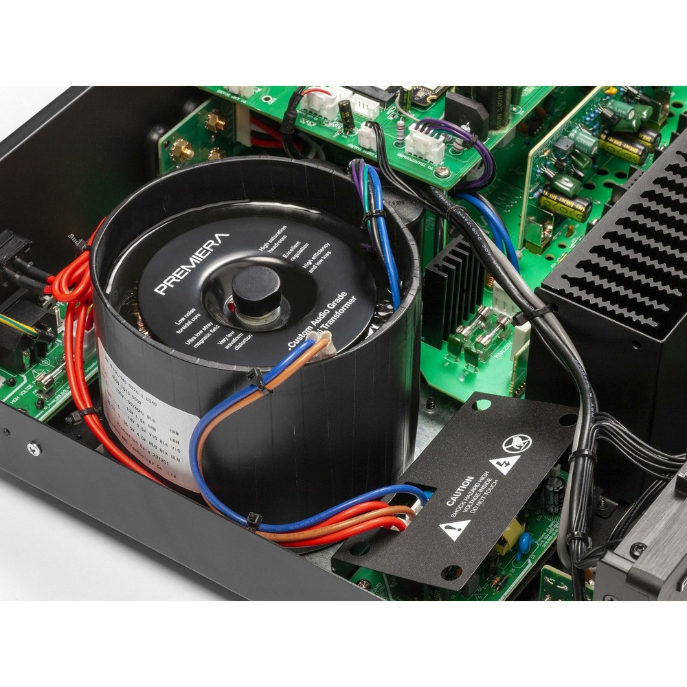 За главную функцию усилителя Premiera A3S отвечает его усилительная часть, питание которой обеспечивает тороидальный экранированный трансформатор мощностью 450 Ватт.