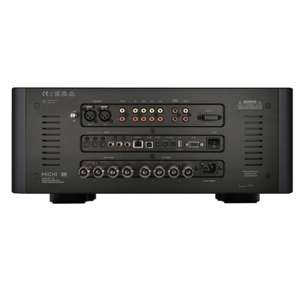 Усилитель X5 Series 2 оснащен множеством функций для бесшовной интеграции в любые аудио системы. На задней панели имеются разъемы для кабельных соединений плюс два комплекта фирменных колоночных клемм Michi с родиевым покрытием, которые обеспечивают беспроблемное подсоединение любых акустических систем, в том числе би-ваерингом. Органы управления и дисплей высокого разрешения на передней панели гарантируют легкость работы и простоту конфигурирования с использованием пульта ДУ Michi. Тороидальный силовой трансформатор собственного производства с большим запасом мощности, высоким КПД и ультра-низким шумом, а также независимые стабилизаторы для изолирования цифровой, аналоговой секций и каскадов усиления мощности, устраняют нежелательные шумы или искажения, помогая улучшить качество звука. Благодаря разъемам RS232 и Ethernet возможна простая интеграция в популярные системы управления, а также обновление программного обеспечения через Интернет или с USB флеш-накопителей.