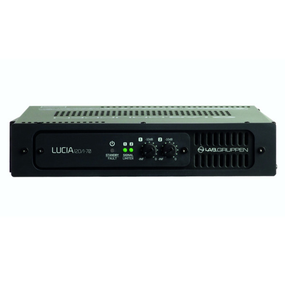 Lab Gruppen Lucia 120/1-70 – это компактный двухканальный инсталляционный усилитель мощности класса D, входящий в серию LUCIA (Localized Utility Compact Intelligent Amplification) производителя Lab.gruppen. Усилитель допускает подключение нагрузки трансляционных линий 70/100В или 16 Ом. Установка уровня звука производится с помощью двух ручек на передней панели, отдельных для каждого из каналов.