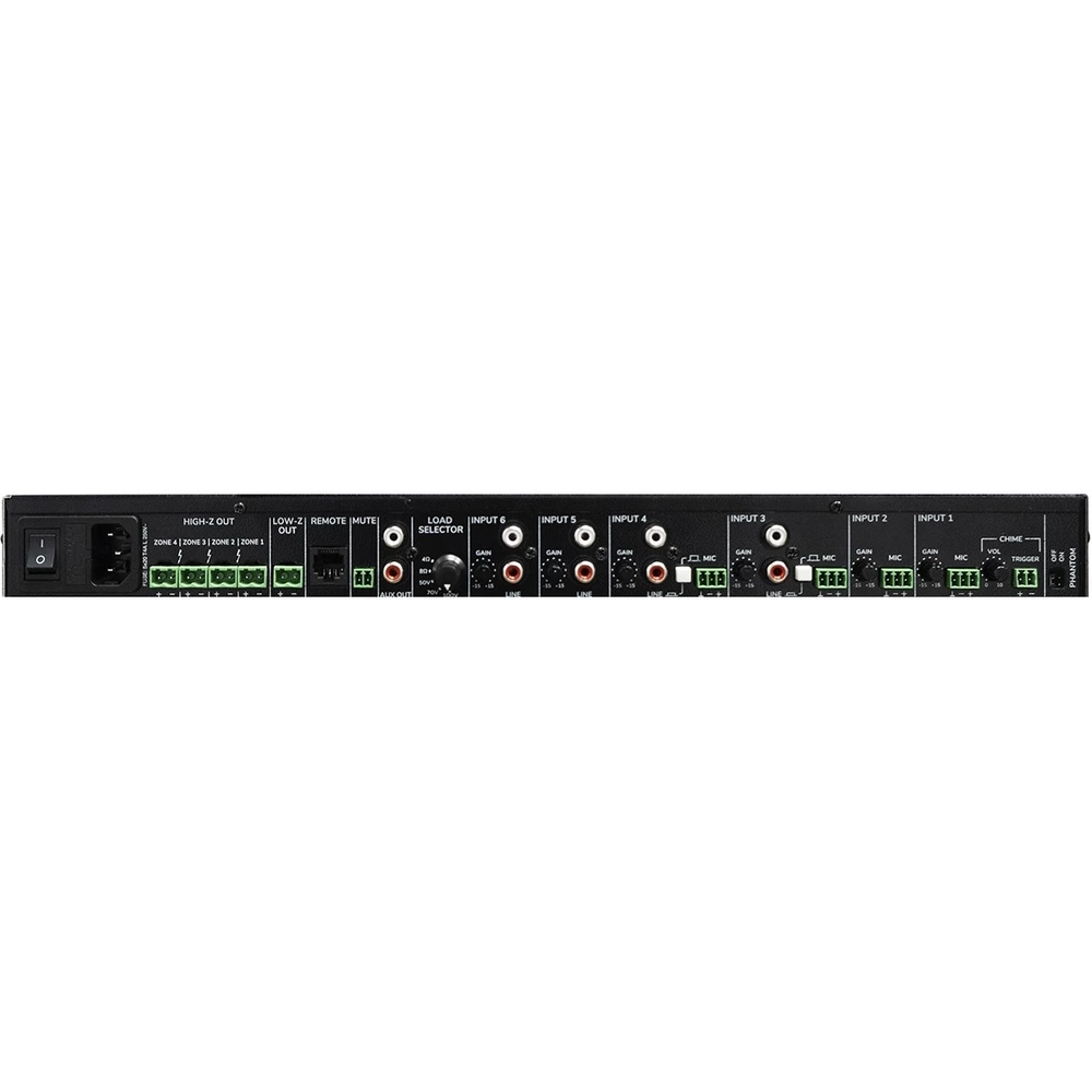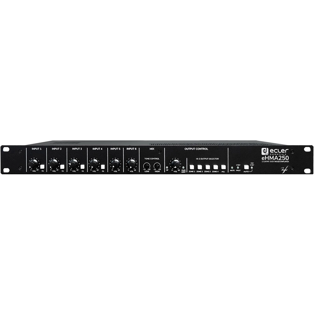 eHMA250 – усилитель мощности на 4 зоны 250 Вт для трансляционной линии 50/70/100 В или с подключением по 4/8 Ом. Два несимметричных линейных стереовхода, два несимметричных линейных стереовхода, совмещенных с микрофонными входами, два микрофонных входа, настройкой приоритета и фантомным питанием 15 В. Управляется панелями серии WPa.