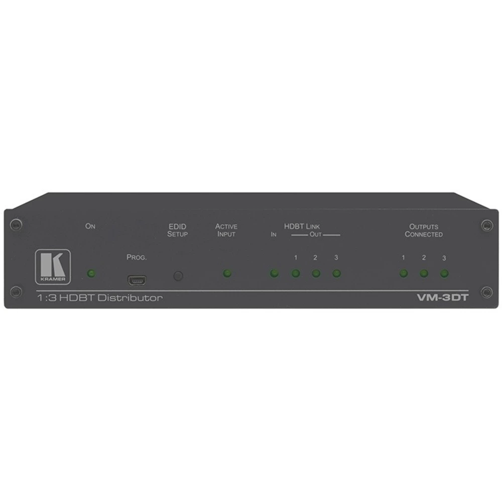 VM-3DT – усилитель-распределитель 1:3 по HDBaseT сигналов HDMI 2.0 с разрешением до 4K/60 (4:2:0) с поддержкой технологий HDCP 1.4 и CEC. Устройство обеспечивает расширенное редактирование EDID и управление маршрутизацией сигналов ИК и RS-232. Дальность передачи сигналов 1080p – 70 метров, а сигналов 4K – 40 метров, совместимые приемники TP-580R.