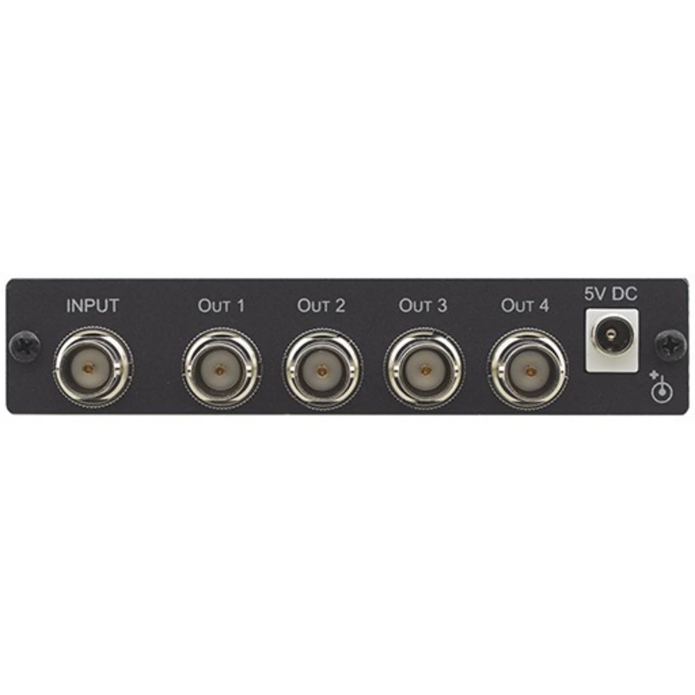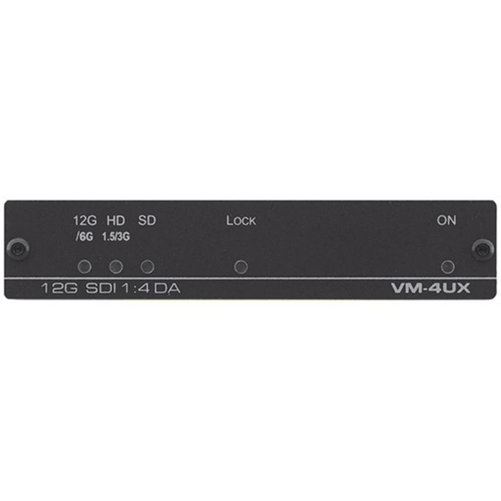 VM-4UX – компактный усилитель-распределитель 1:4 сигналов SD/HD/3G/6G/12G-SDI разрешением до 4К/60 (YUV 4:2:2) с эмбеддированным аудио. Устройство производит эквализацию входного сигнала с перетактированием. При использовании коаксиальных SDI-кабелей Kramer стандартное расстояние передачи составляет: 300 м для SD-сигнала; 200 м для HD-сигнала; 100 м для 3G и 6G HD-сигналов; 80 м для 12G 4K-сигналов.