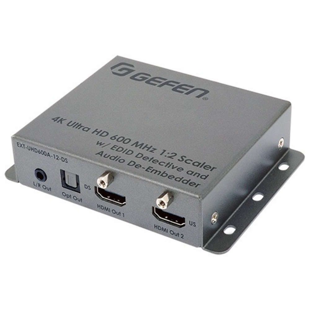 EXT-UHD600A-12-DS – усилитель-распределитель 1:2 сигналов интерфейса HDMI с HDCP 1.4 и 2.2 разрешения 4Kх2K, 3D с HDR и независимым масштабированием каждого выходного сигнала. Поддерживаются сигналы разрешением до 4096x2160/60 с цветовым пространством YUV 4:4:4 и Deep Color до 10 бит, сигналы 1080p с Deep Color 12 бит. Полоса пропускания 600 МГц. Поддерживаются кодеки многоканального встроенного аудио LPCM 7.1, Dolby Atmos, Dolby TrueHD, DTS:X и DTS-HD Master Audio. Совместим с ПО Gefen Syner-G.