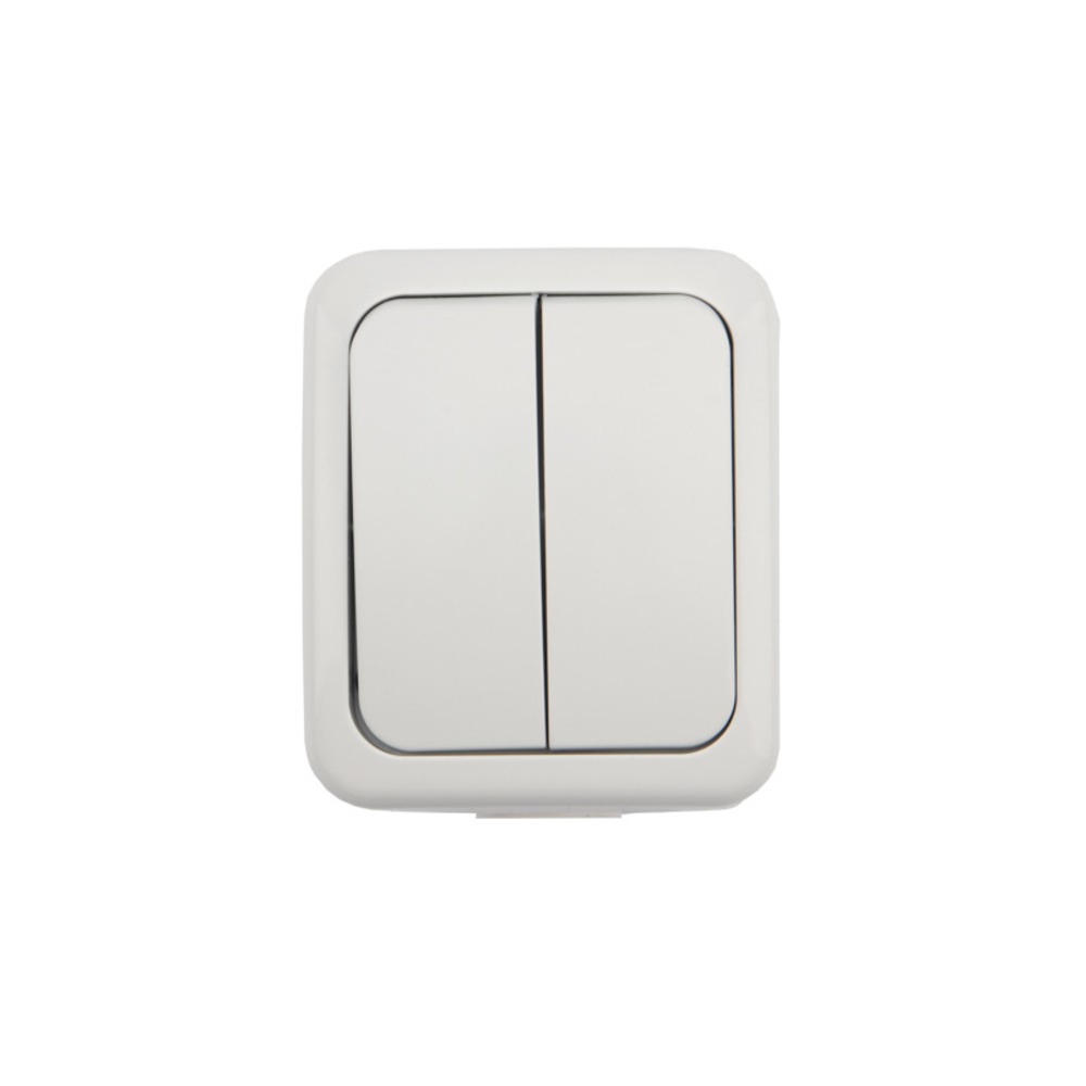Двухклавишный накладной выключатель KRANZ предназначен для организации электроснабжения не только в сухом помещении, но и во влажной и пыльной среде. Благодаря лаконичной форме корпуса и классическому белому цвету, он с легкостью впишется в любой интерьер. Отлично подойдет для улицы, дачи, ванной комнаты и бассейна при наличии навеса, защищающего от прямого попадания влаги. Выключатель прост и легок в установке, не требует дополнительных элементов крепления. Технические характеристики: Напряжение: 250 В Частота тока: 50 Гц Номинальный ток: 10 А Степень защиты: IP54 Сечение проводников: 1,00-2,50 мм² Рабочая температура: -25...+40 °С