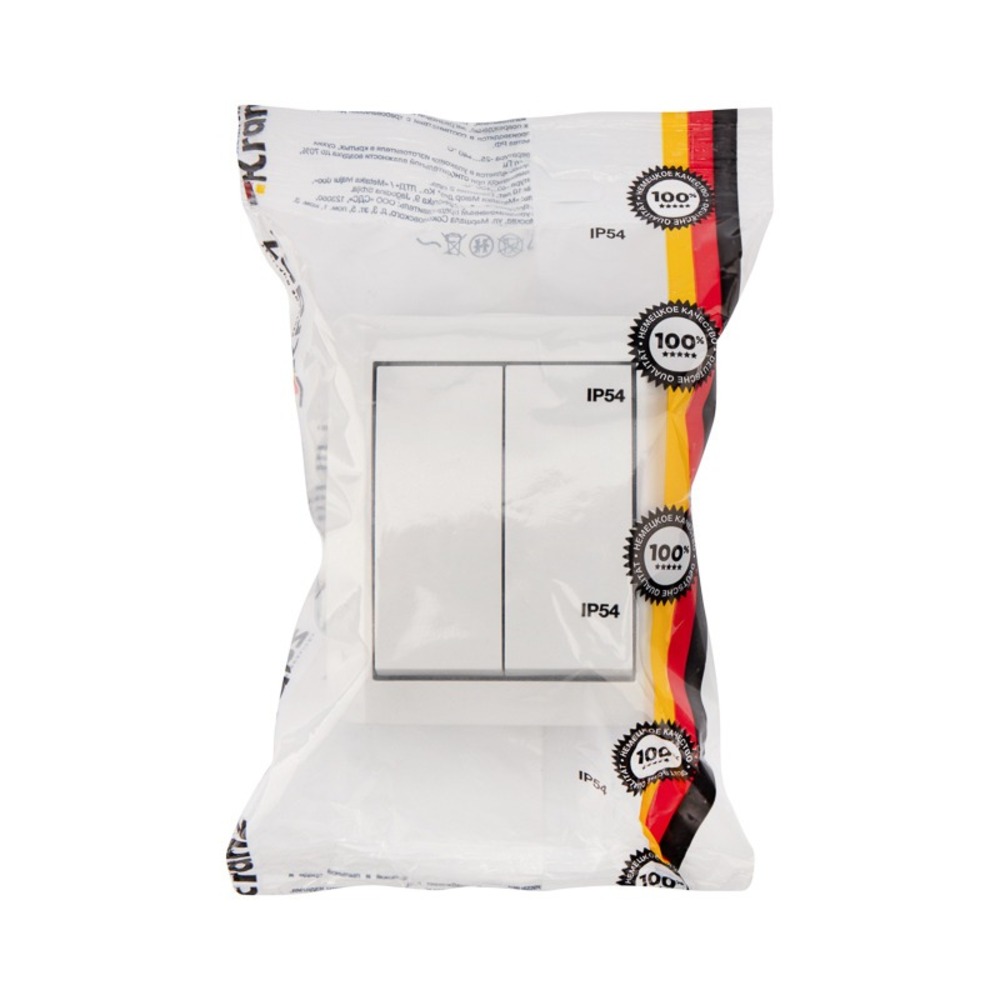 Выключатель двухклавишный INDUSTRIAL IP54, о/у, белый KRANZ предназначен для организации электроснабжения не только в сухом помещении, но и во влажной и пыльной среде. Благодаря лаконичной форме корпуса, он с легкостью впишется в любой интерьер. Отлично подойдет для дачи, ванной комнаты, бассейна и улицы при наличии навеса, защищающего от прямого попадания влаги. Выключатель прост и легок в установке. Технические характеристики: Напряжение: 220-250 В Частота тока: 50 Гц Номинальный ток: 10АХ Степень защиты: IP54 Сечение проводников: 1,5-2,5 мм² Рабочая температура: -25...+40 °С