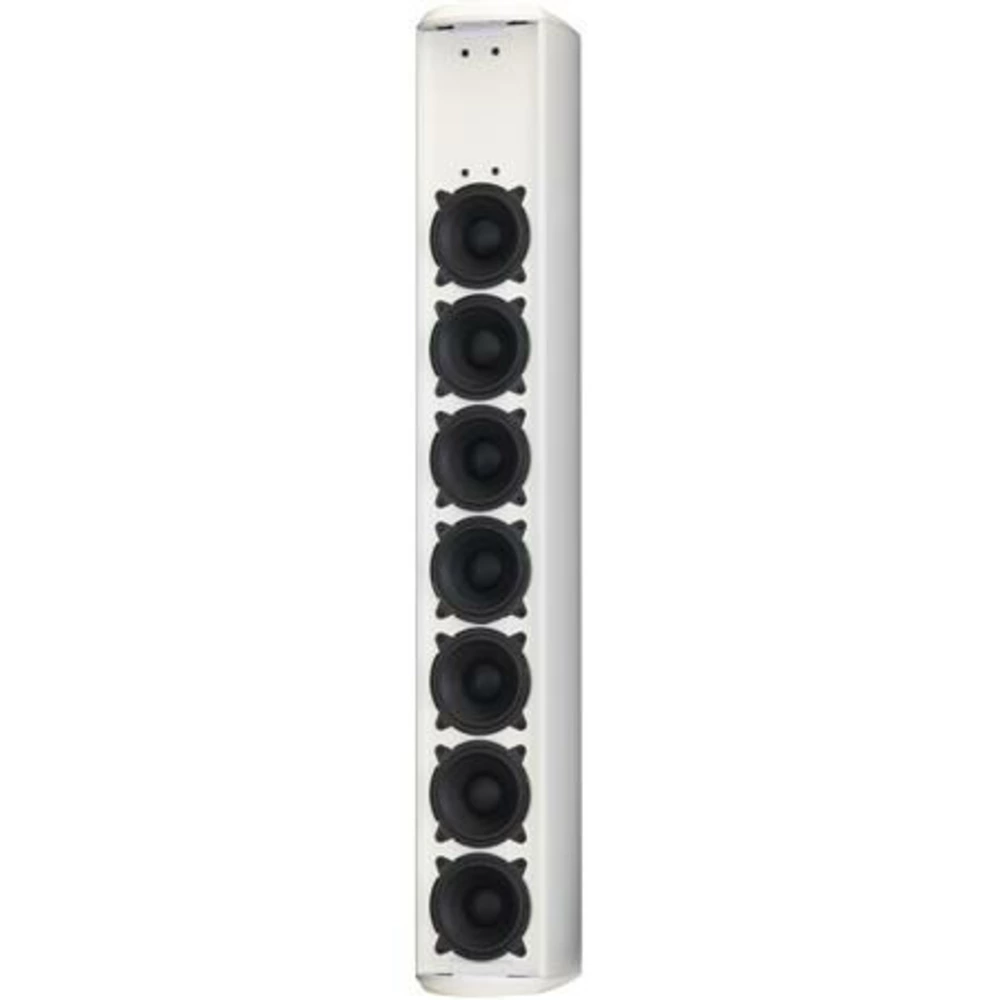 Во вторых, акустические колонны имеют широкую диаграму направленности в горизонтальной плоскости, что позволяет равномерно озвучивать помещения большого объёма меньшим количеством колонок.